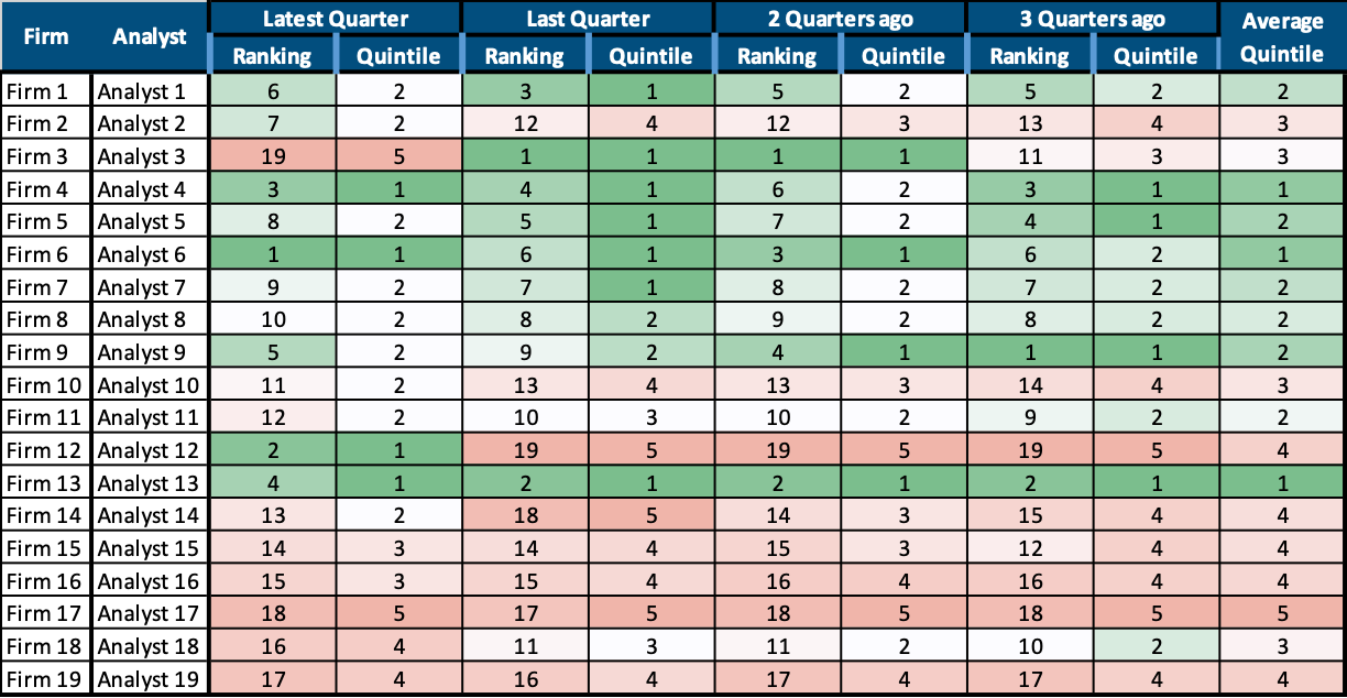 Not all analysts have the same impact. Some set the pace, releasing estimates first and shaping the initial market reaction. Others follow, echoing or challenging the consensus. It’s essential to know who’s leading: track whose commentary consistently moves the stock, whose estimates are closest to reality, and whose updates drive volume. When an influential analyst (say, Analyst 8) weighs in, that’s a signal to engage directly and ensure your message is clear.1